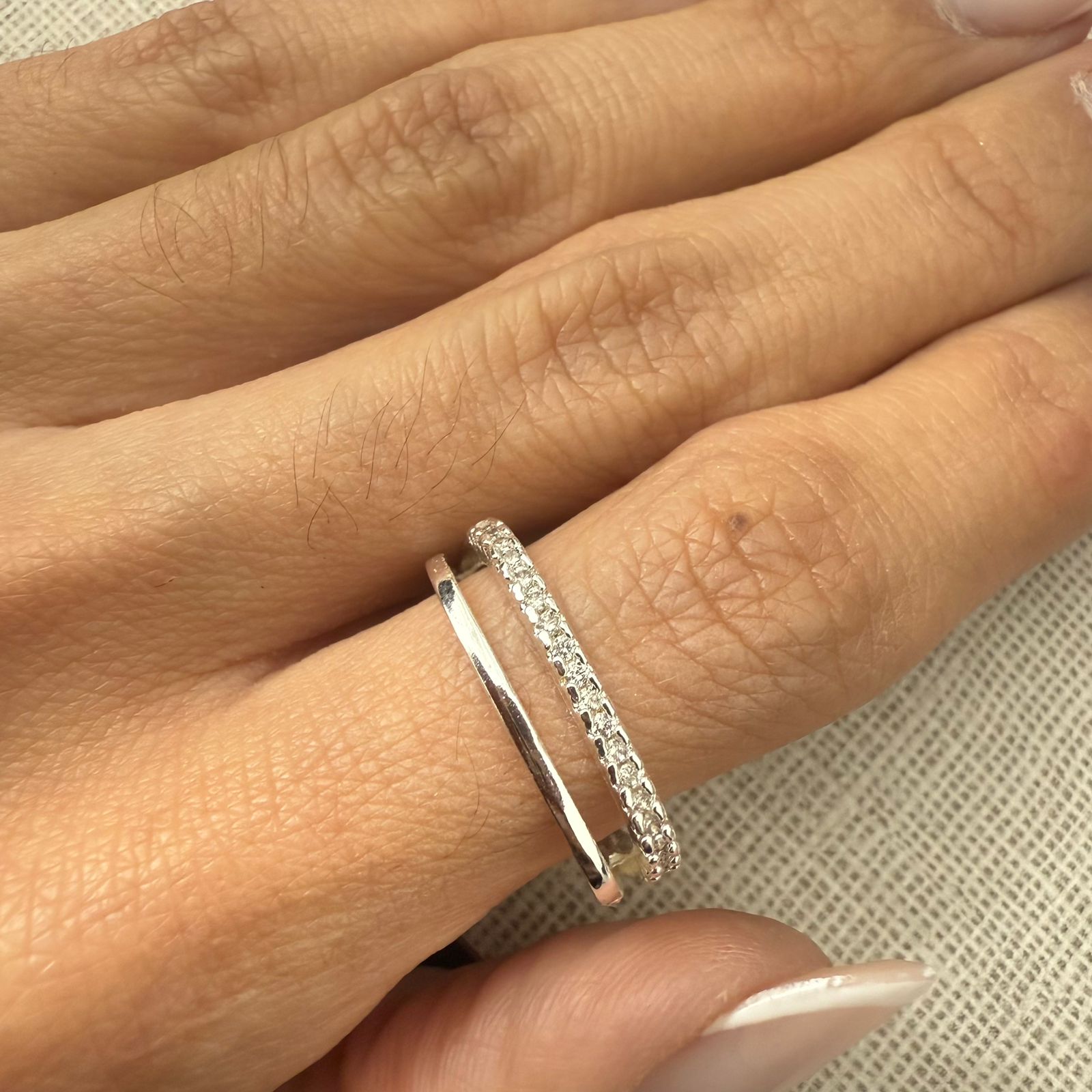 ANEL QUADRADO ARO DUPLO ZIRCÔNIAS