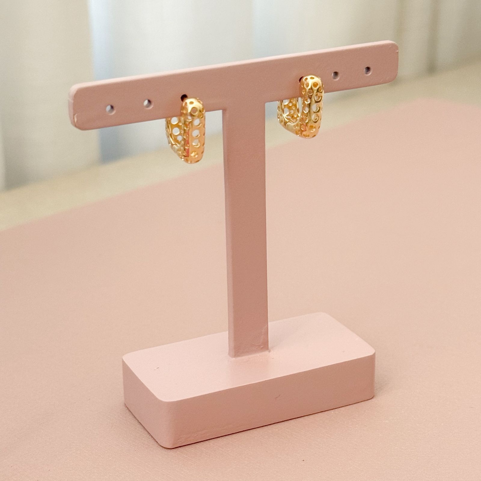 TRIO DE ARGOLAS QUADRADO VAZADO COM BOLINHAS