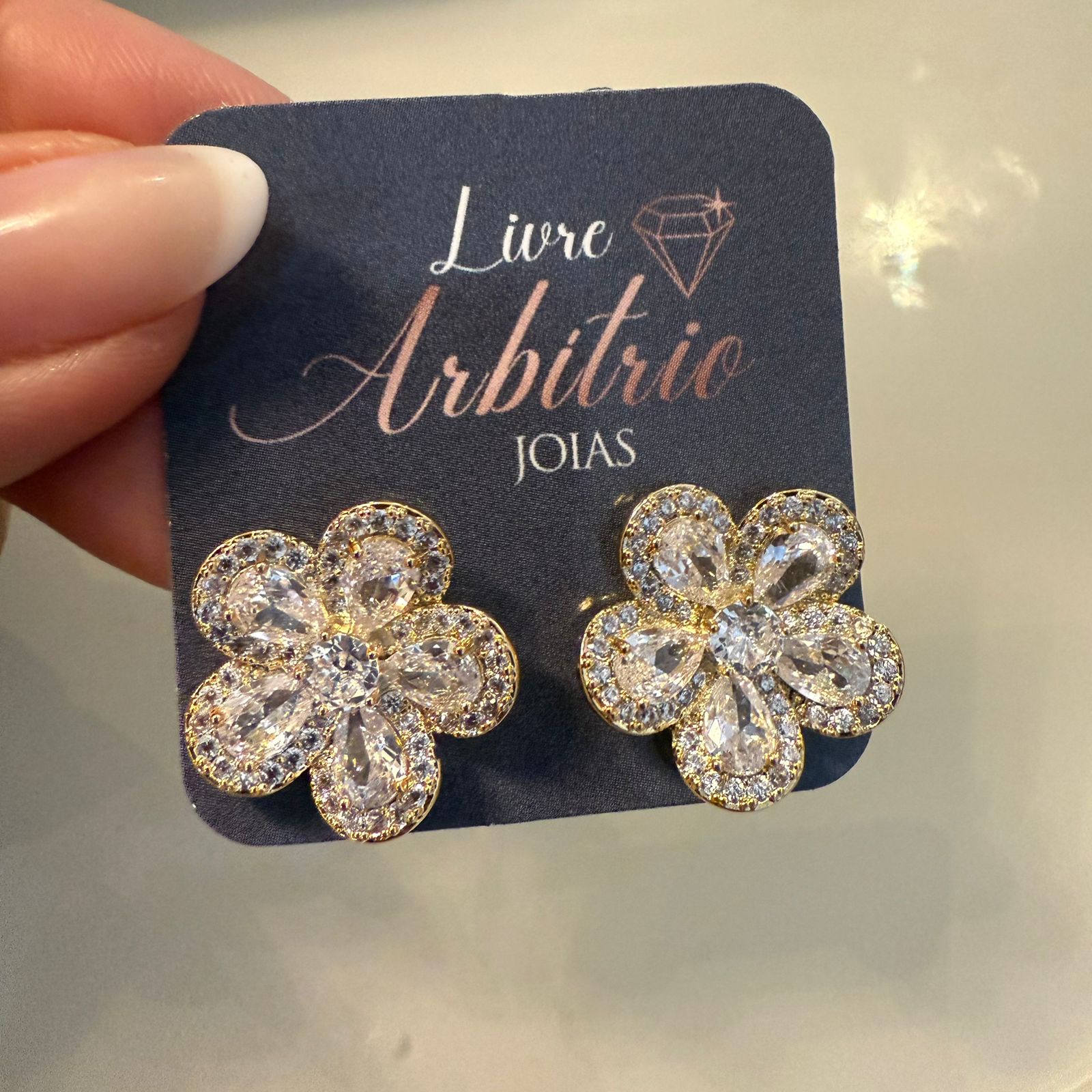 BRINCO FLOR PÉTALAS GOLD CRISTAL