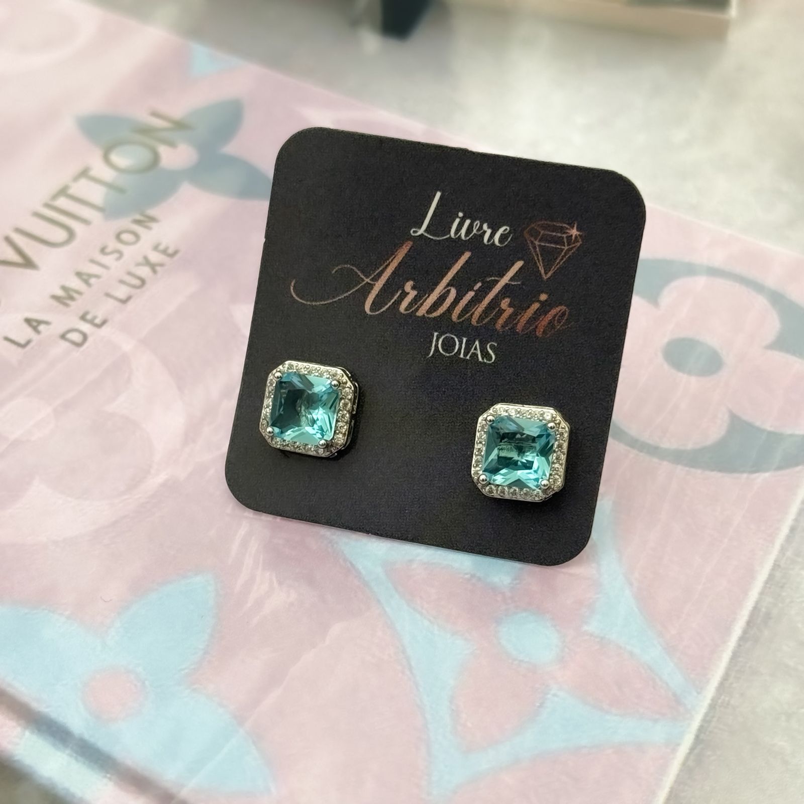 BRINCO QUADRADO DIAMOND IRIS 10MM AZUL CLARO