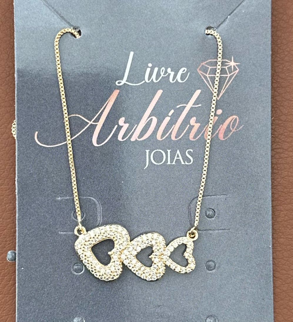COLAR 40CM 3 CORAÇÕES DEITADOS COM ZIRCÔNIAS