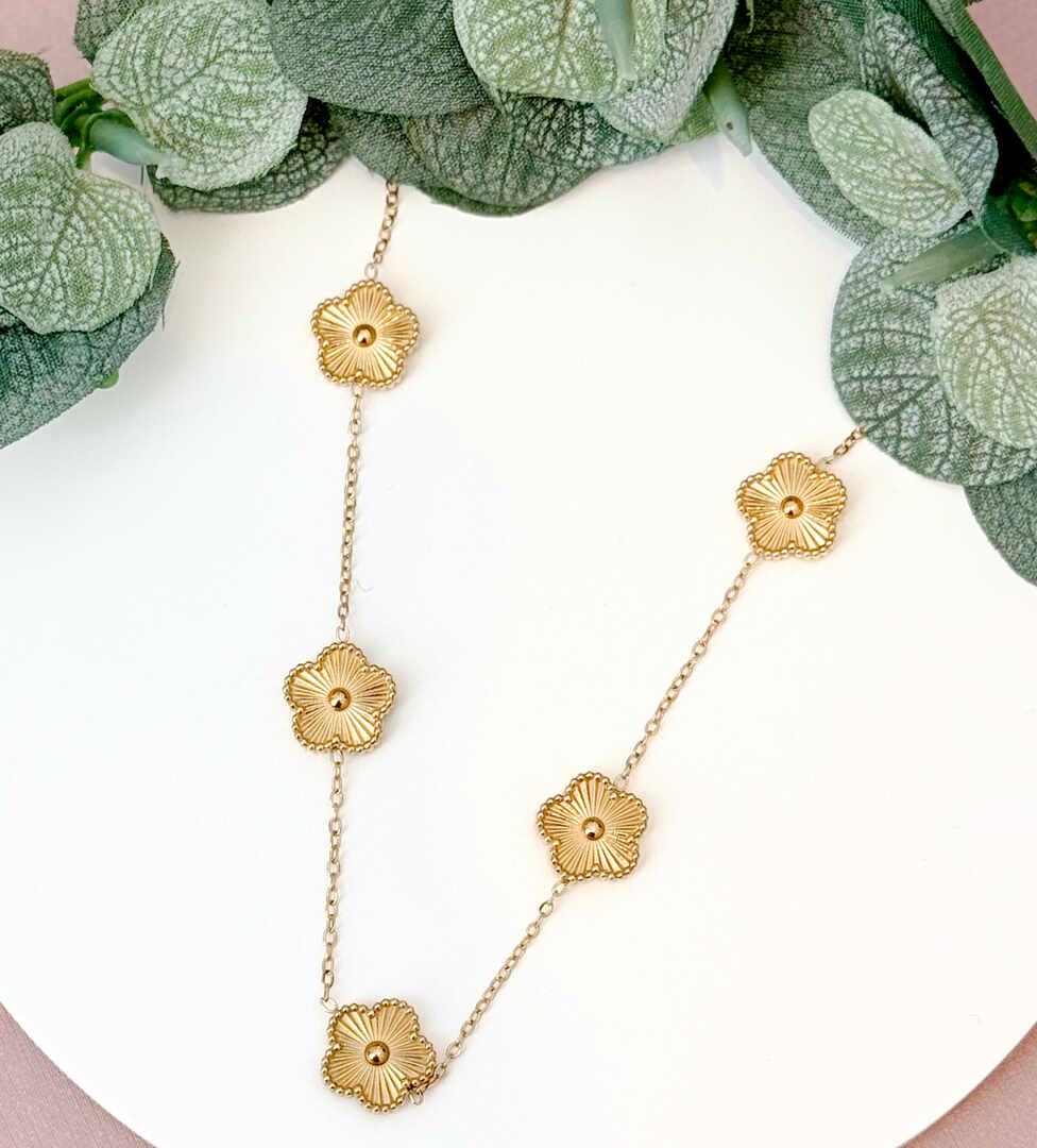 COLAR FLORES TRABALHADAS GOLD INSP - AÇO 316L