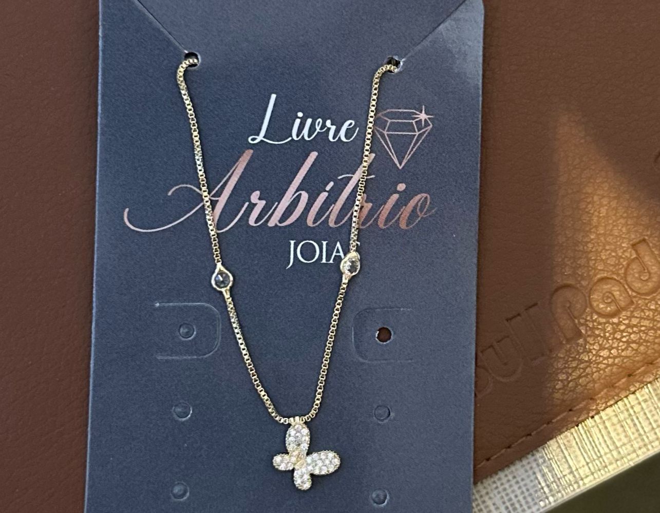 COLAR VENEZIANA 40CM BORBOLETA PEDRAS