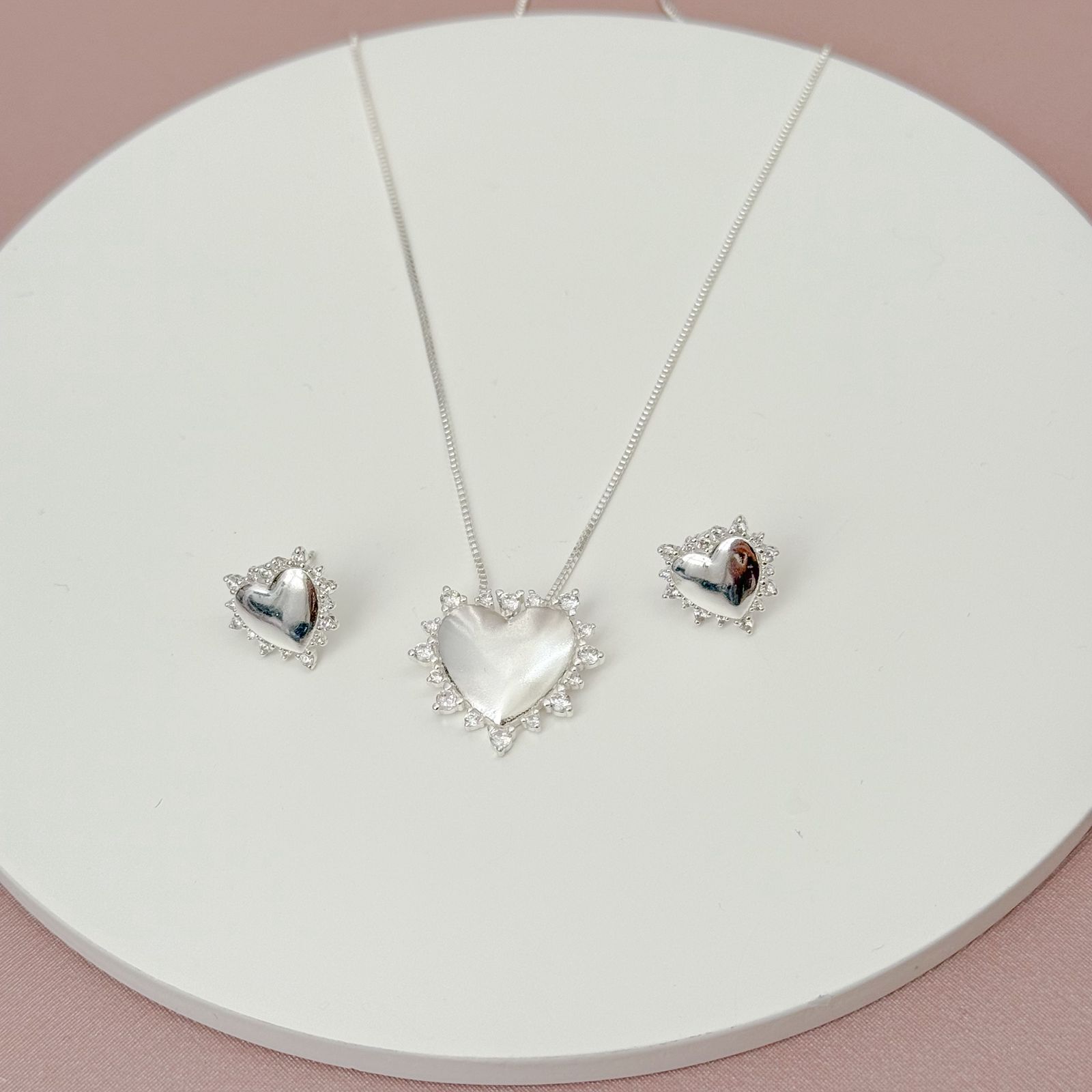 CONJUNTO BRINCO COLAR CORAÇÃO LOVE SPARK GOLD