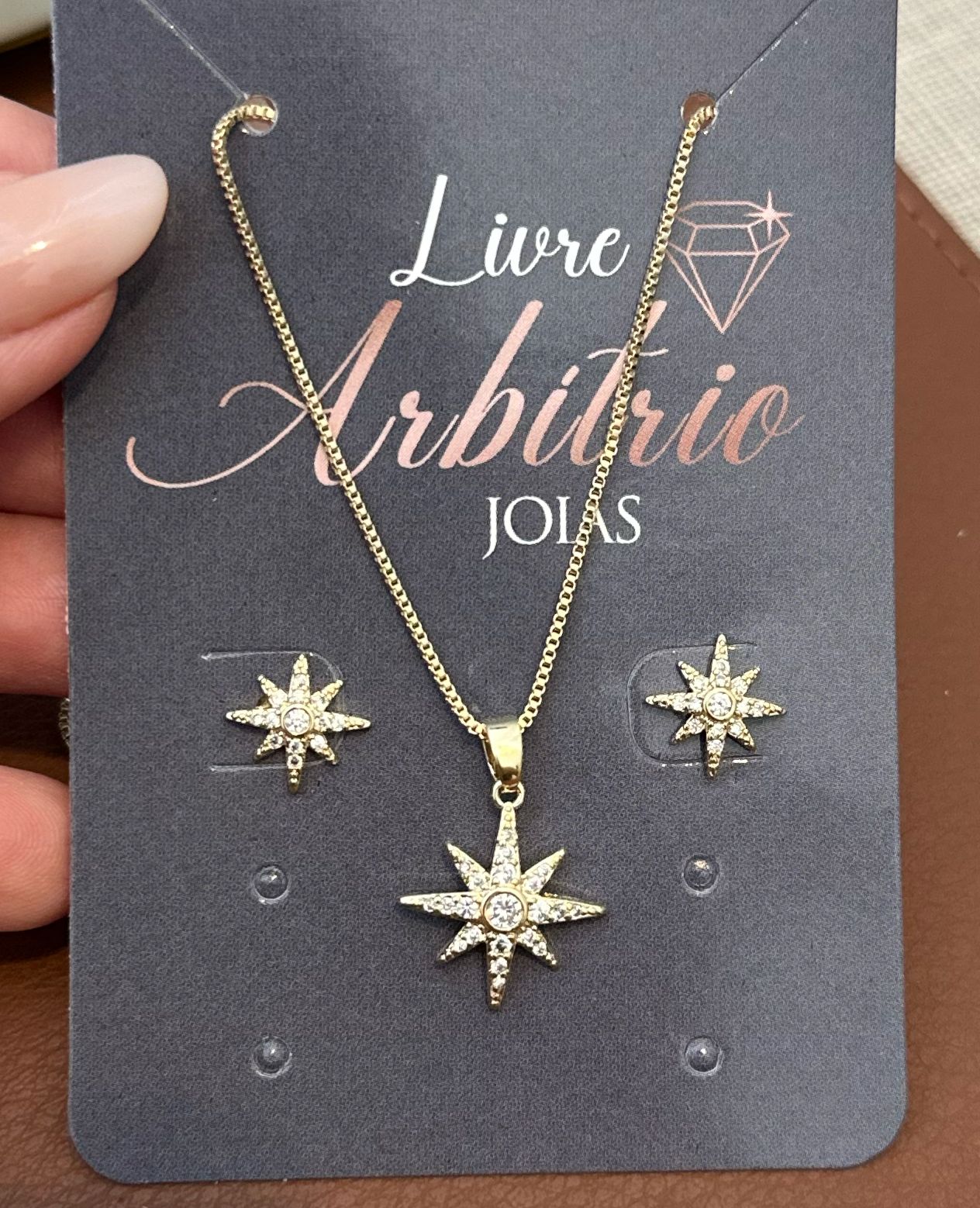 CONJUNTO COLAR E BRINCO ESTRELA 8 PONTAS