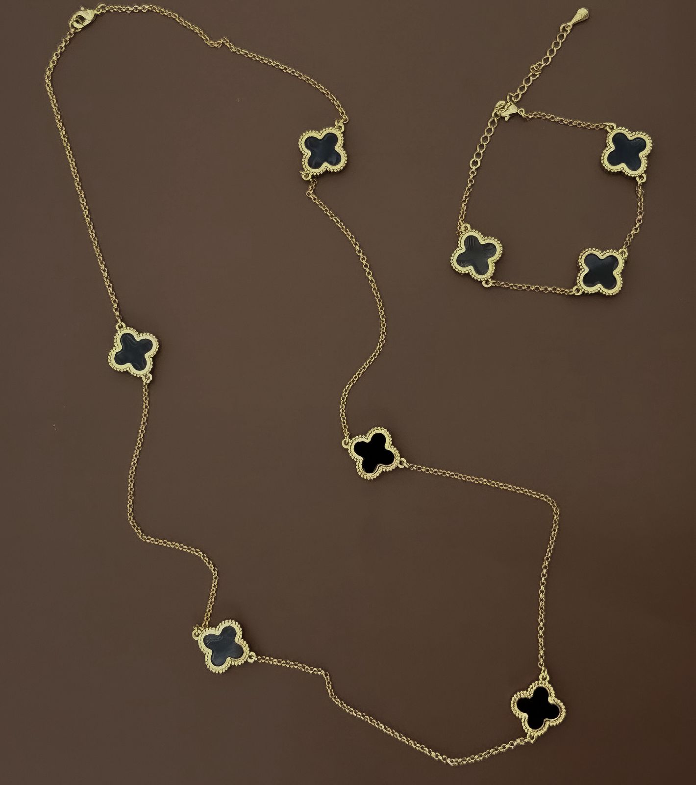 COMPRIMENTO COLAR: 60CM. COMPRIMENTO PULSEIRA: 22CM NO TOTAL. BANHADO A OURO 18K