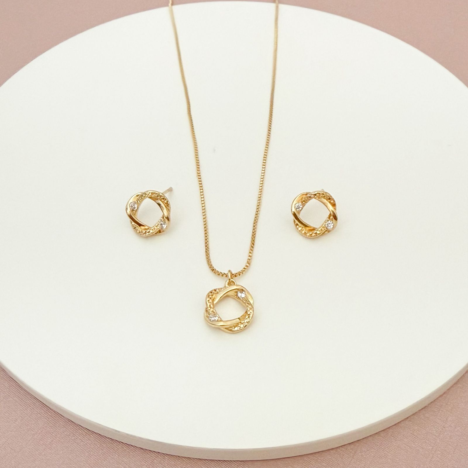CONJUNTO GOLD LUNA CIRCLE PEDRAS
