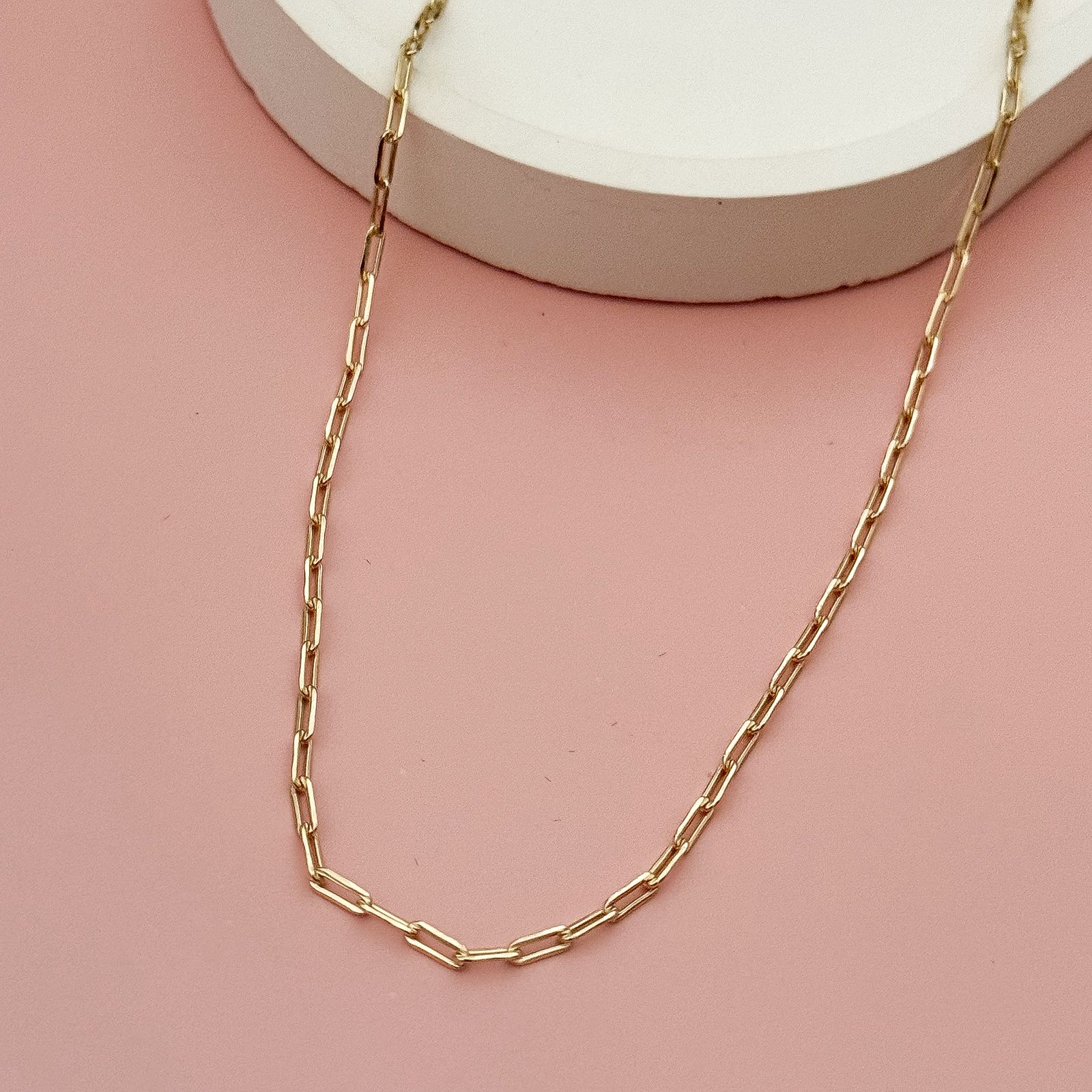 COMPRIMENTO: 35CM C/ EXTENSOR 45CM. ELO 3MM BANHADO A OURO 18K. FOTO REAL DO PRODUTO. BANHADO A RÓDIO BRANCO. METAL HIPOALERGÊNICO, NÃO CONTÉM NÍQUEL.