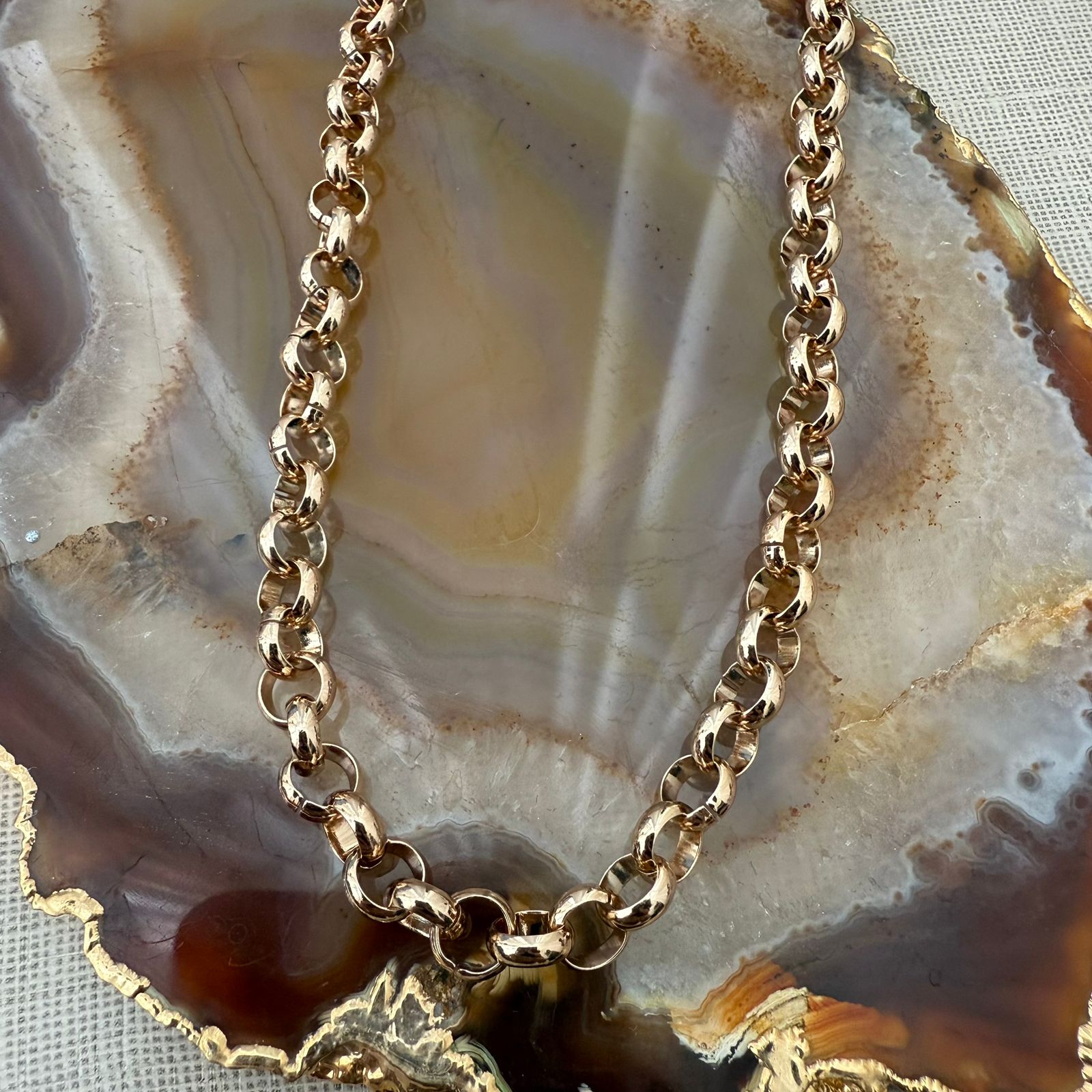 BANHADA A OURO 18K. COMPRIMENTO: 45CM COM AJUSTE PARA 40CM. DIÂMETRO DO ELO: 6MM