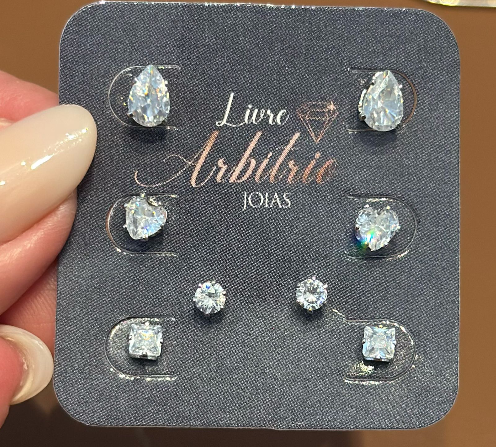 KIT 4 BRINCOS CRISTAL BONJOUR