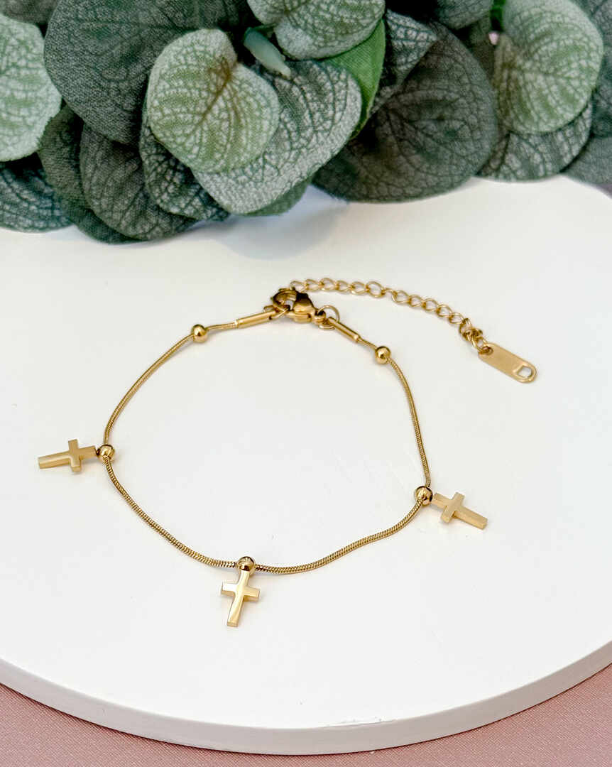 PULSEIRA RABO DE RATO COM CRUZ GOLD - AÇO INOX