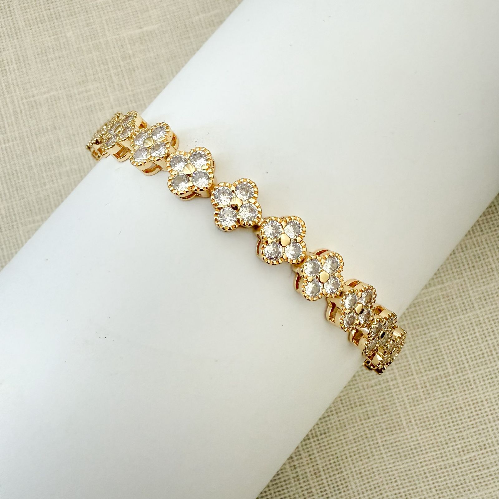 PULSEIRA RIVIERA FLOR DOURADA CRAVEJADA