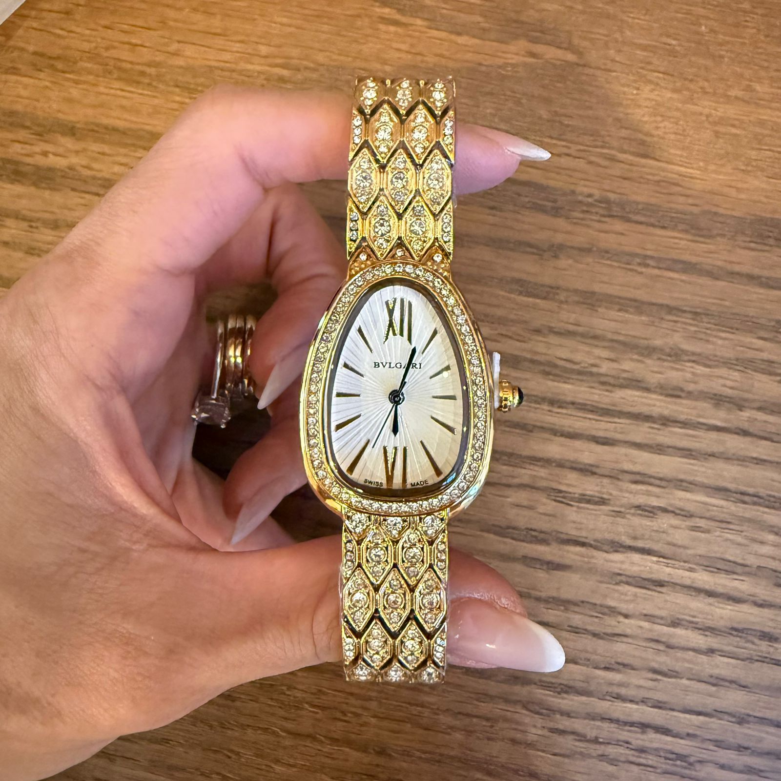 RELÓGIO LUXO COBRA CRAVEJADO DOURADO