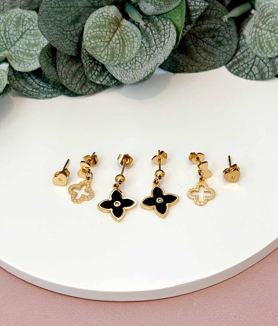 TRIO BRINCOS INSP IVSL BLACK GOLD - AÇO 316L