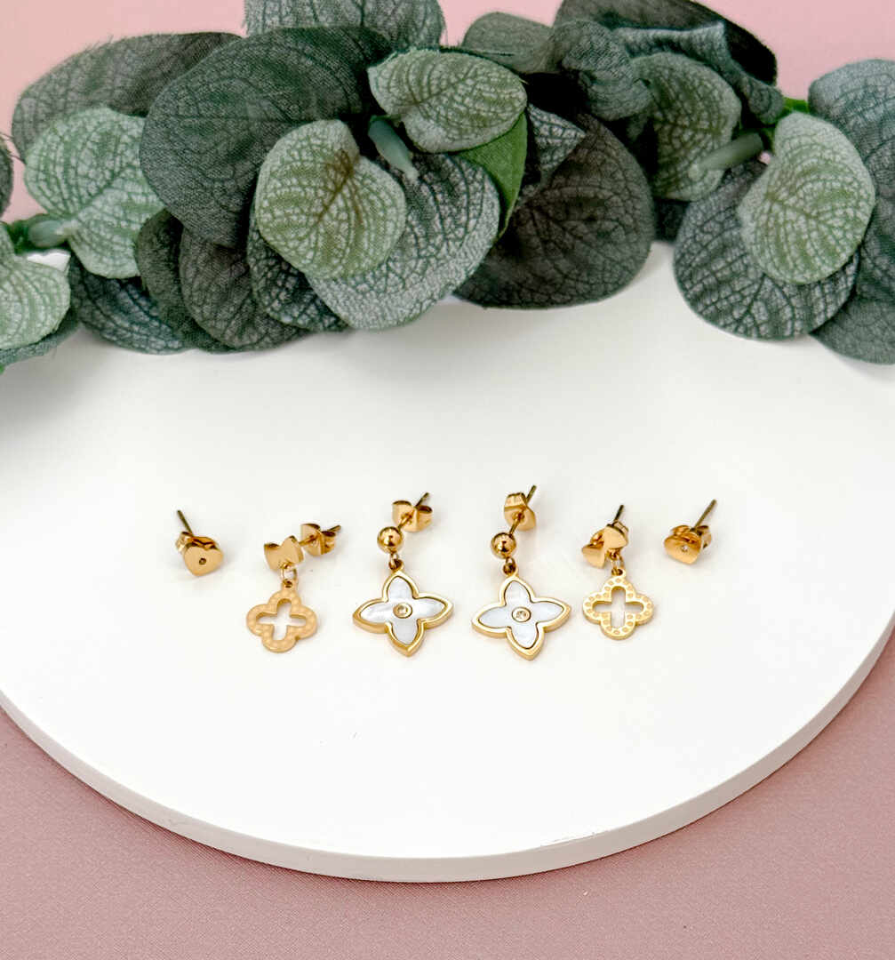 TRIO BRINCOS INSP IVSL MADREPÉROLA GOLD - AÇO 316L