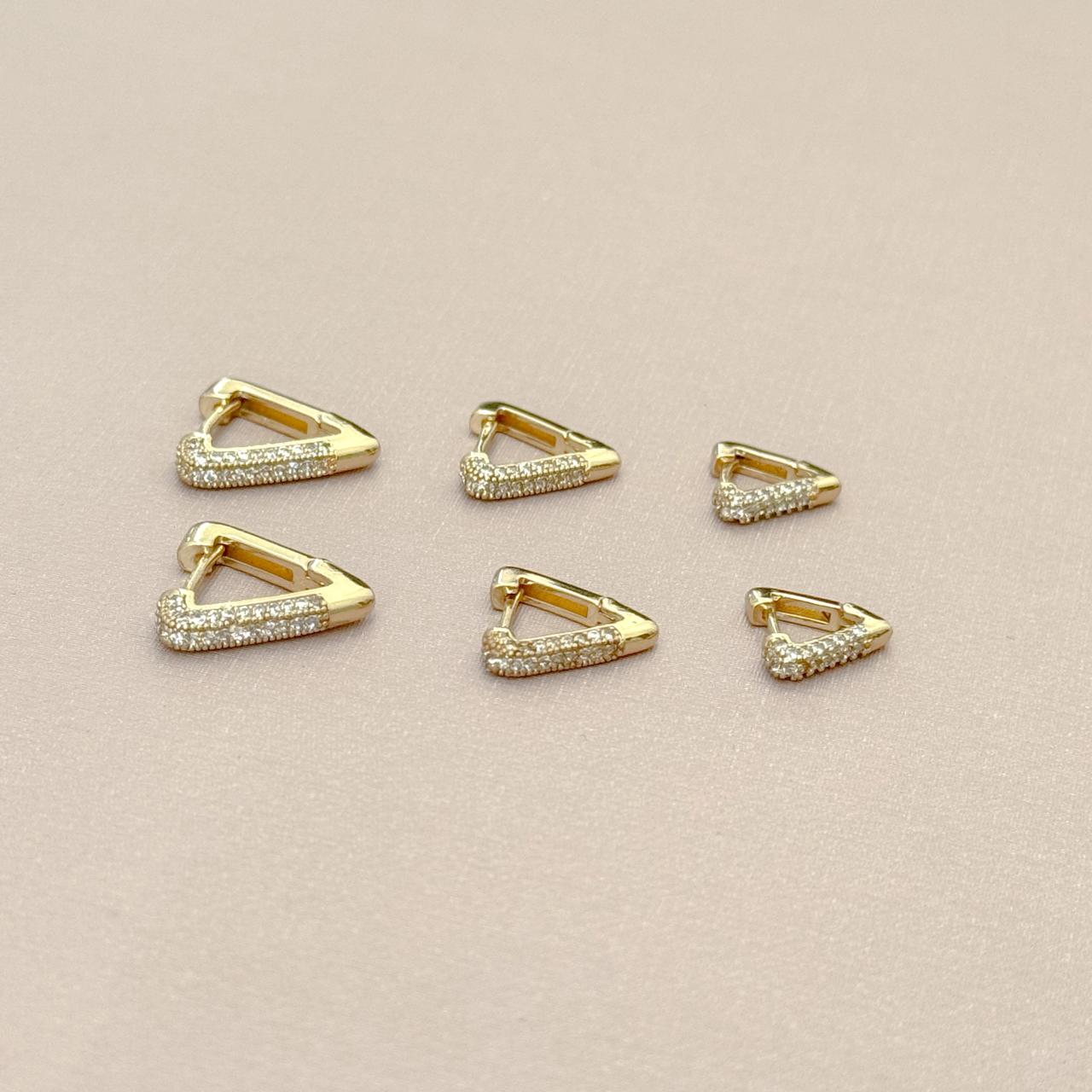 TRIO DE ARGOLAS FORMATO V ZIRCÔNIAS GOLD