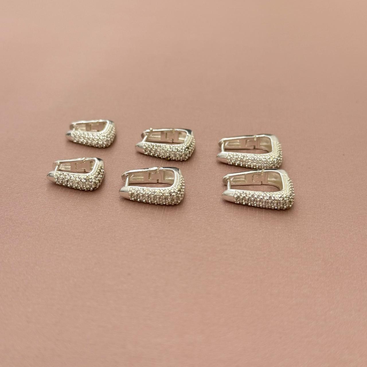 TRIO DE BRINCOS ARGOLA U DIAMOND ZIRCÔNIAS
